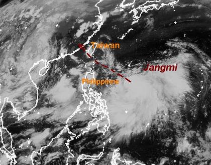 Taifun 'Jangmi' über dem westlichen Pazifik verlagert sich unter Verstärkung nach Nordwesten und nimmt Kurs auf Taiwan. Berechnungen zufolge streift am Sonntag die Südküste der Insel, seine mittleren Windgeschwindigkeiten erreichen etwa 200 km/h, in Böen werden bis zu 250 km/h erwartet. Danach wird er sich weiter nach Nordwesten in Richtung chinesischer Küste bewegen. (Bildquelle: NERC Satellite Receiving Station, Dundee University, Scotland, http://www.sat.dundee.ac.uk/)