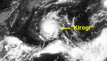 Über dem westlichen Pazifik östlich von Taiwan hat sich der neue Taifun 'Kirogi' aufgebaut. Berechnungen zufolge verstärkt er sich in den nächsten Tagen, so dass zum Ende der Woche seine Windgeschwindigkeiten 160, in Böen bis 190 km/h erreichen. Die genaue Zugbahn des Taifuns ist jedoch noch unklar, er bewegt sich voraussichtlich sehr langsam nach Norden.