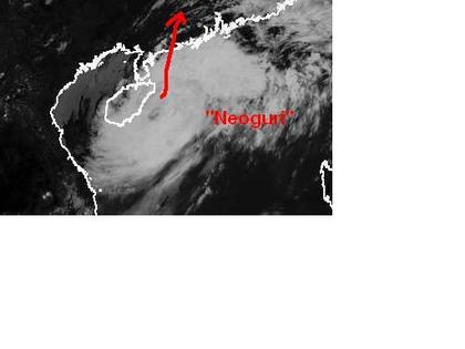 Der Taifun 'Neoguri' im Südchinesischen Meer hat mittlere Windgeschwindigkeiten von 176, in Böen 213 km/h erreicht, und liegt auf dem Satellitenbild von Freitag früh mit seinem Zentrum etwas östlich der chinesischen Insel Hainan. Berechnungen zufolge soll er sich nicht weiter verstärken, am Samstag aber die südchinesische Küste erreichen. Auch Hongkong wird voraussichtlich von seinen Ausläufern beeinflusst werden. Neben dem Orkan ist auch mit sehr starkem Regen zu rechnen. (Bildquelle: NERC Satellite Receiving Station, Dundee University, Scotland, http://www.sat.dundee.ac.uk/)