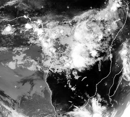 Auf dem Satelittenfoto von heute Morgen 6 Uhr MEZ zeigt sich die Südhälfte Afrikas teils dicht bewölkt. In einem breiten Streifen von der Atlantikküste am Golf von Guinea bis teils zur Indikküste in Somalia sorgen vielfach hochreichende Wolken für zahlreiche, teils gewittrige Niederschläge. Besonders kräftig und ergiebig sind die Regenfälle heute im Kongo und in Zaire.