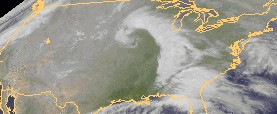 Auf dem heutigen Satellitenfoto der USA ist vom Mittleren Osten bis in den Südosten der Staaten ein ausgestrecktes Tiefdrucksystems zu erkennen. Im Einzug dieses Tiefs fällt, unter meist dichter Bewölkung, verbreitet Regen. Besonders in den Bundesstaaten im Südosten fällt teils kräftiger und ergiebiger Regen.