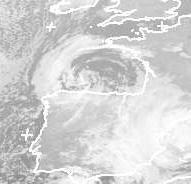 Auf dem Satellitenbild von Mittwoch früh ist die Wolkenspirale von Tief 'Quentin' über der Biscaya gut zu erkennen. Dieses alte Tief löst sich hier langsam auf, sorgt aber heute noch in Frankreich und Spanien für Schauer. (Bildquelle: NERC Satellite Receiving Station, Dundee University, Scotland, http://www.sat.dundee.ac.uk/)