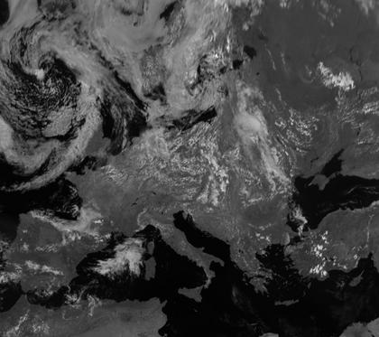 Auf dem Satellitenbild ist nördlich der Britischen Inseln sehr gut das Tief 'Xenia' zu erkennen. Weite Teile des übringen Europas liegen zunehmend unter Hochdruckeinfluss.