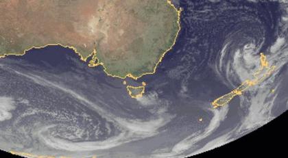 Bei Neuseeland und südwestlich von Tasmanien befinden sich zwei Tiefdruckgebiet. Diese werden auf der Südhalbkugel im Uhrzeigersinn umströmt.