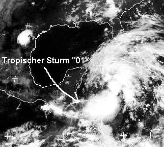 Über dem Karibischen Meer wirbelt sich ein Tropischer Sturm auf. Nach den neuesten Berechnungen verlagert er sich in den nächsten Tagen unter Verstärkung nach Norden, dabei überquert er die Straße von Yukatan und den Golf von Mexiko und erreicht am Sonntag mit Windgeschwindigkeiten von etwa 92 km/h die US-Küste.