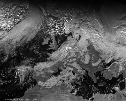 Bei vielfach anhaltend dichten Wolken und zeitweiligem Schneefall herrscht im Norden und Nordosten Europas meist trübes Tiefdruckwetter. Ebenfalls meist viele Wolken und gelegentlicher Regen fällt in einem breiten Streifen von der Biskaya, über das nördliche Frankreich, Benelux, Deutschland bis zur Ostsee.