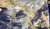Auf dem Satellitenfoto vom Süden und Südosten Asiens zeigen sich meist viele Wolken, die in diesen Regionen für häufigen und ergiebigen Regen sorgen. Örtlich komm es dabei zu kräftigen Gewittern.