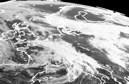 Das Hoch 'Waltraud' über Skandinavien sorgt im Norden und Osten Deutschlands heute zunächst für meist nur geringe Bewölkung. Von Südschweden bis nach Polen liegt dabei noch ein dichtes Wolkenband, das durch das Hoch zunächst kaum aufgelöst wird. Zunächst nähern sich diese Wolken jedoch kaum Deutschland. Über dem Süden und Westen liegt dafür noch die dichte Bewölkung von Tief 'Nick'. Sie bewegt sich ebenfalls kaum weiter. (Bildquelle: NERC Satellite Receiving Station, Dundee University, Scotland, http://www.sat.dundee.ac.uk/)