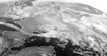 Die Dichten Wolken am Schwarzen Meer gehören zu Tief 'Diana'. Es sorgt heute noch für zum Teil kräftige Niederschläge rund um das Schwarze Meer. Auch in Italien bringt ein kleines Tief heute Regen. Hoch 'Ingo' erstreckt sich zur Zeit westlich von Norwegen bis nach Russland. Auf seiner Südseite wird mit einer östlichen Strömung kalte und wolkenreiche Luft nach Mitteleuropa geführt. In Frankreich, sowie in Spanien und Portugal ist der Himmel dagegen fast wolkenlos.