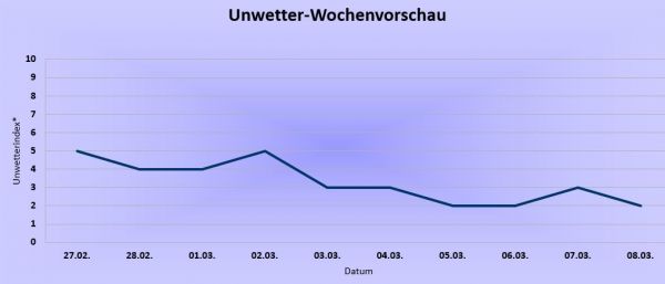 Die Gefahr durch Unwetter bleibt in der neuen Wetterwoche oft auf mäßigem Niveau. Zum Rosenmontag erwarten wir im Tagesverlauf von Westen her einsetzenden und regional auch starken und teils gewittrigen Regen. Am Dienstag und Mittwoch herrscht dann im gesamten Bundesgebiet sehr durchwachsenes und von Schauern, teils mit Graupel oder Schnee, durchsetztes Wetter. Am Donnerstag zeichnet sich vor allem im Norden teils stürmisches, aber auch sonst sehr windiges Wetter ab. Ab dem Freitag dürfte es dann über das Wochenende hinaus insgesamt ruhiger und auch trockener weitergehen.
