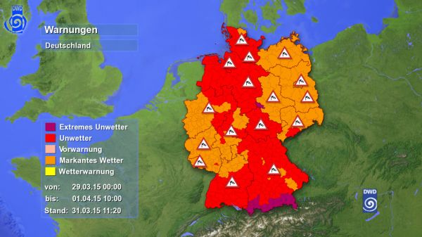 Weiterhin besteht für weite Teile Deutschland eine Unwetterwarnung. In  exponierten Höhenlagen, etwa im Harz und im Alpenvorland warnt der DWD aktuell sogar vor extremem Unwetter.
