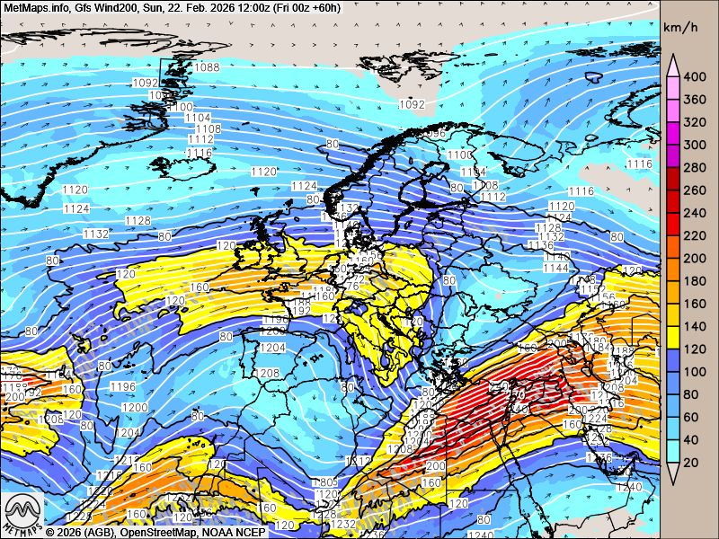 Die Höhenwindkarten für Sonntag- und Donnerstagmittag nach GFS: