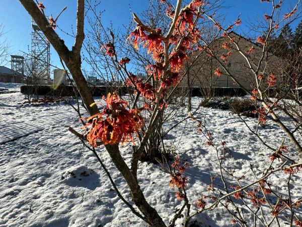 Für einen farbenfrohes Blütenfeuerwerk sorgt aktuell wieder die Zaubernuss im Donnerwetter.de Wetterpark in der Eifel.