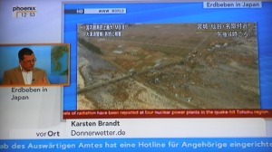 Schon seit dem Morgen war unser Donnerwetter.de-Meteorologe Karsten Brandt als Experte im Studio von PHOENIX. Er erklärte bis zum Nachmittag die Entstehung und die Auswirkungen von Erdbeben und half bei der Einordnung und Bewertung der Nachrichten und Bilder, die aus Japan kommen.