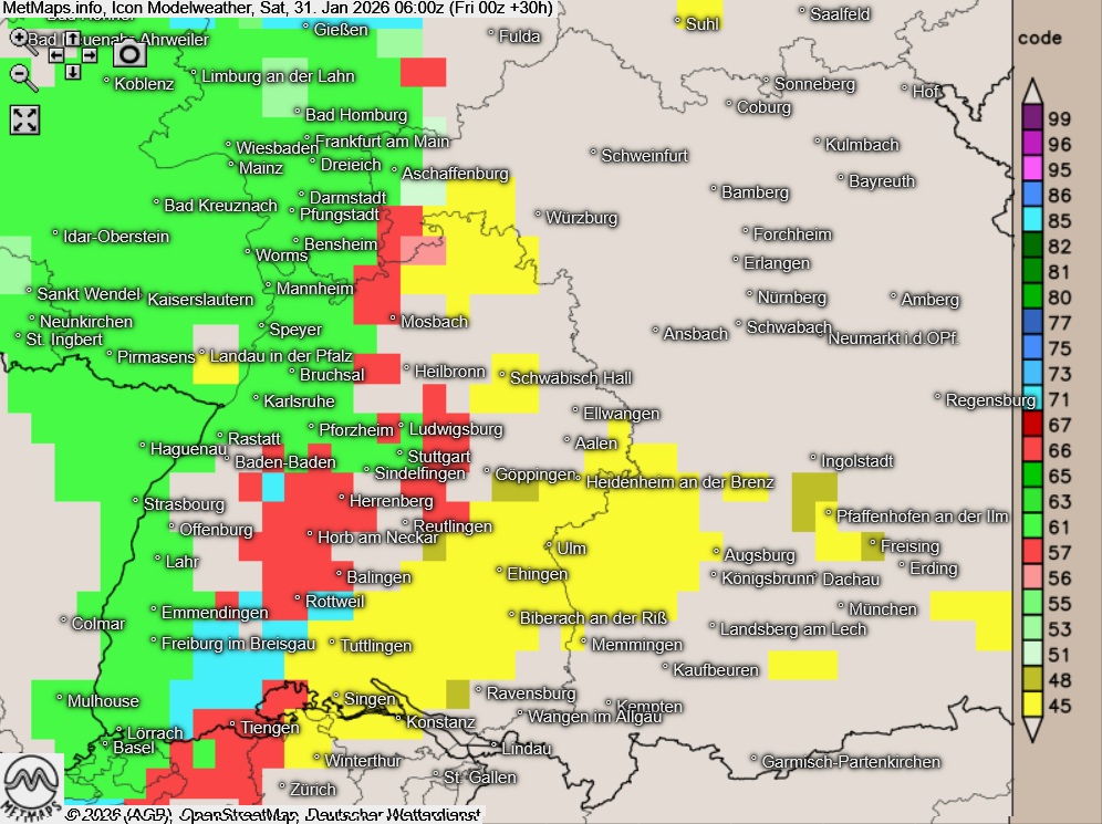 Besonders betroffen sind der Süden und Südwesten, wo ab dem späten Abend lokal mit gefrierendem Regen gerechnet werden muss.
