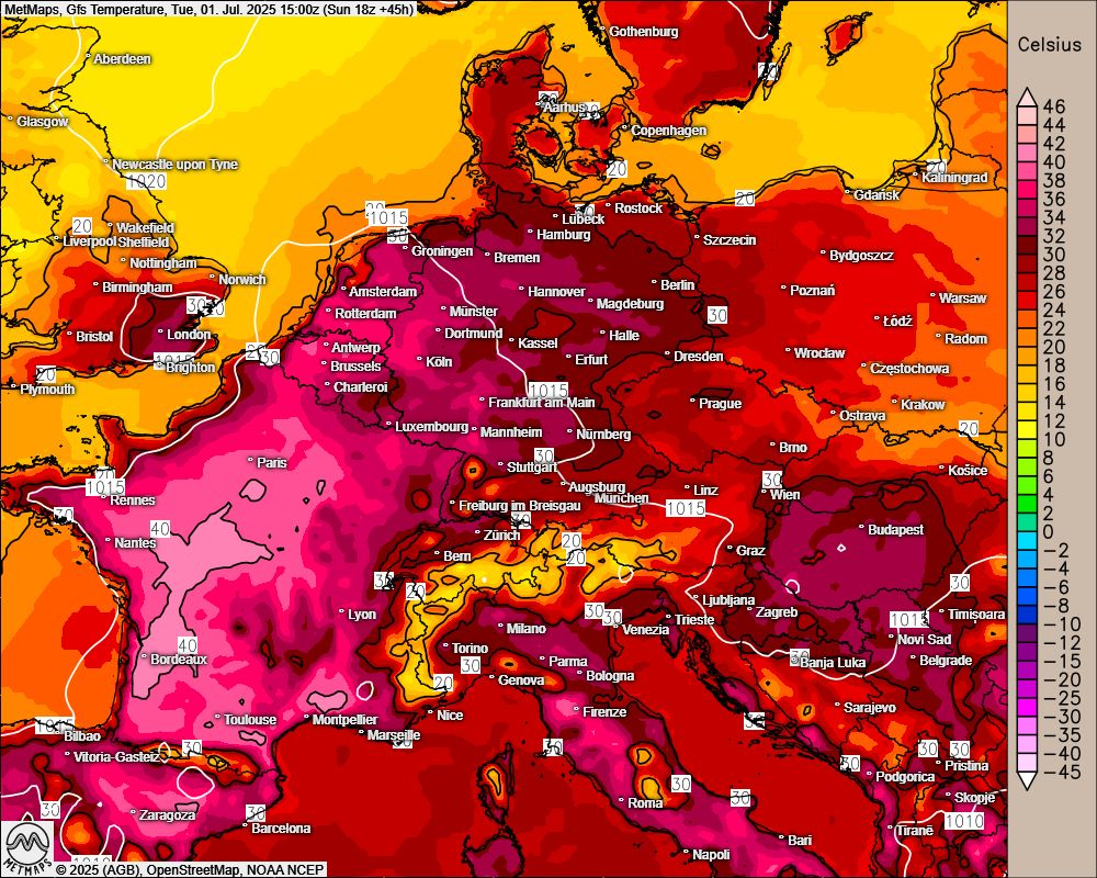 Die aktuelle Hitzewelle erreicht ungefähr das Niveau der Hitzewellen von Juli/August 2018 mit 37 bis 40 Grad C in der Spitze. Im gesamten Mitteleuropa dürfte sie zwischen dem dritten und sechsten Platz der stärksten Hitzewellen der letzten 100 Jahre landen.