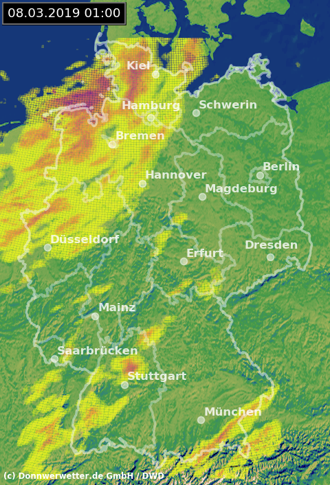 Radarbild von Freitag, 08.03.2019 um 01.00 Uhr