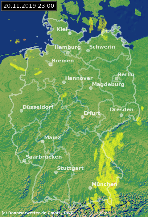 Radarbild von Mittwoch, 20.11.2019 um 23.00 Uhr