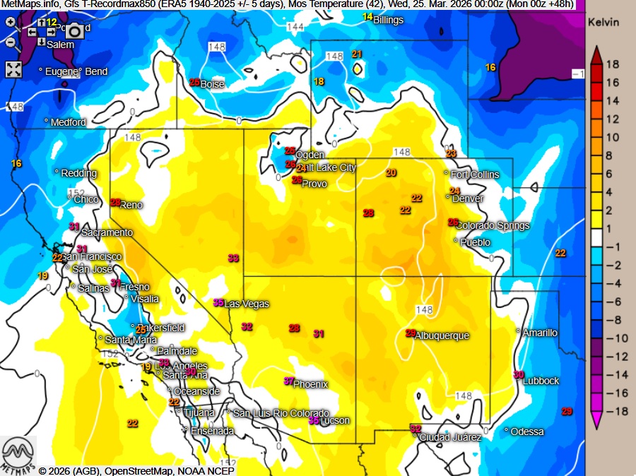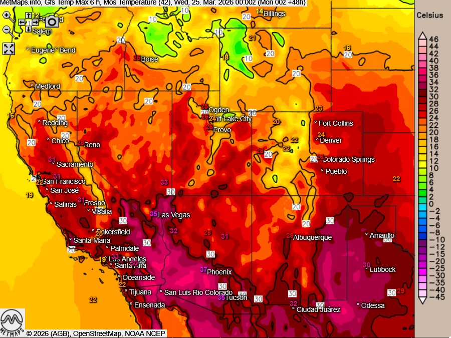 In Arizona wurde in der vergangenen Woche sogar ein neuer März-Rekord von über 43 °C gemessen – ein Wert, der normalerweise erst im Mai erreicht wird