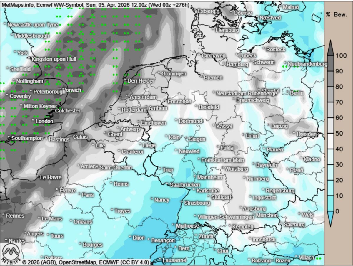 Sowohl das GFS- als auch das ECMWF-Modell zeigen aktuell die Chance auf ein Hochdruckgebiet über Deutschland ab Ostern. Dieses könnte über die Feiertage für sonniges Wetter und angenehmere Temperaturen sorgen – ideale Bedingungen also für versteckte Schokoeier und Schokohasen im Garten.