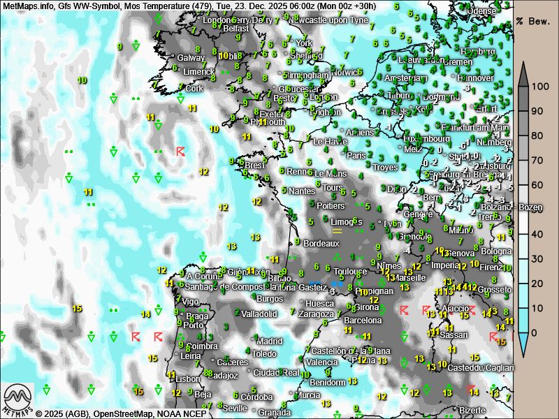 Wetter- / Temperaturen Europa, 23.12.2025 (06:00 Uhr)