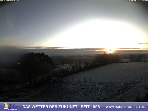 Für den bisherigen Winter selbst für die Mittelgebirge ungewöhnlich, starteten die höheren Lagen heute morgen mit ein paar weißen Flocken in die neue Woche. Das Bild entstand am donnerwetter.de-Wetterpark in der Hohen Eifel.