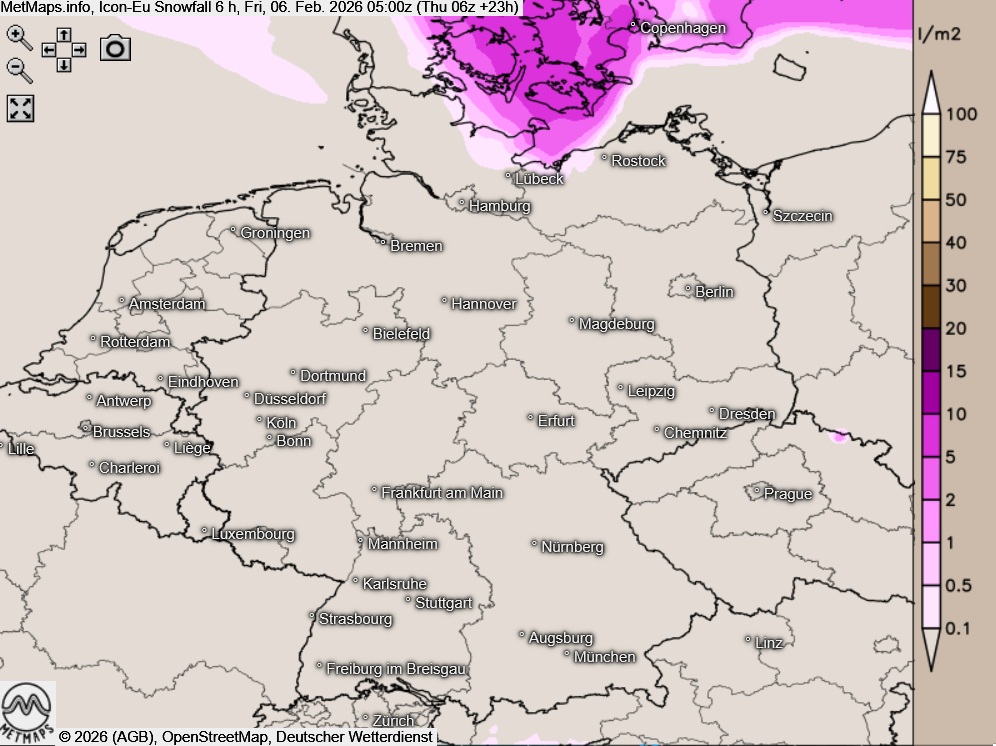 In der Nacht auf Freitag gehen die Niederschläge im Nordosten Deutschlands allmählich von Schnee in gefrierenden Regen über. Dabei kann es stellenweise zu massiver Eisbildung kommen, Unwetter durch Glatteis sind in diesen Regionen nicht ausgeschlossen!