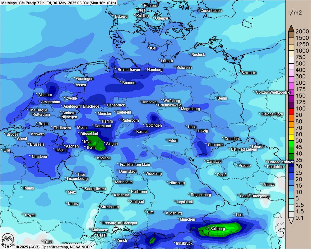 72-Stunden-Regenmengen bis Freitag GFS (03:00 Uhr)