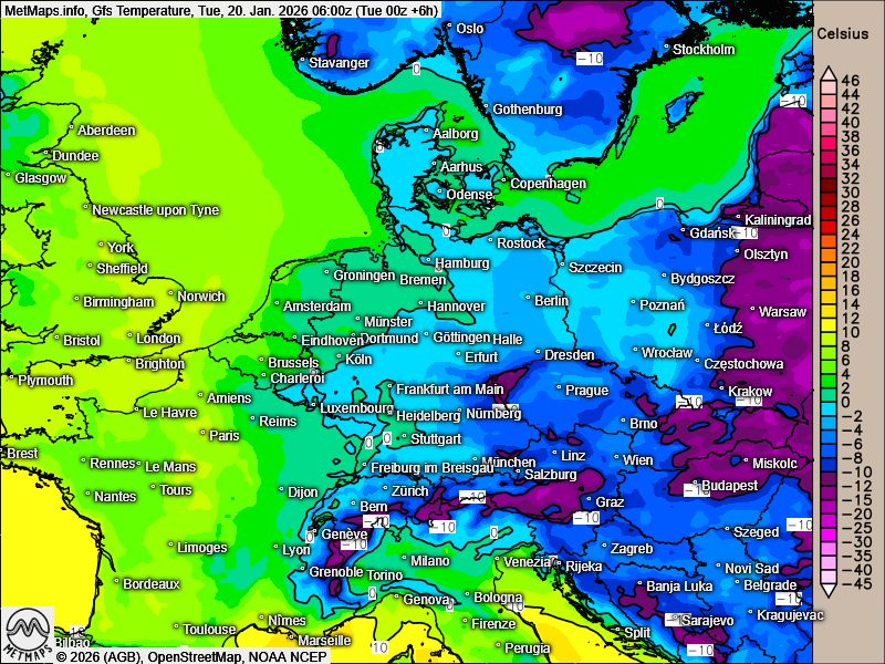 Frühtemperaturen Dienstag (06:00 Uhr)