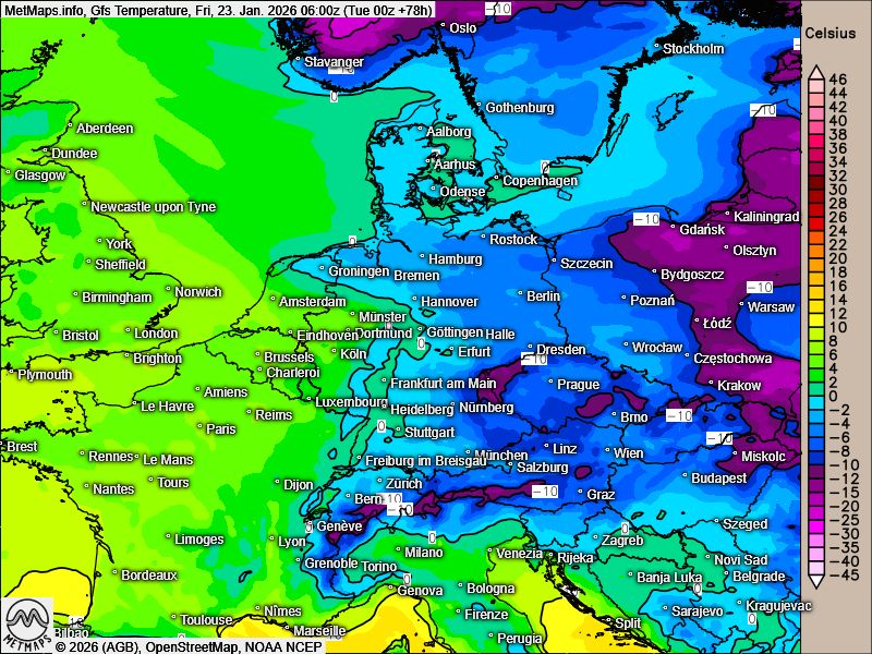 Frühtemperaturen Freitag (06:00 Uhr)