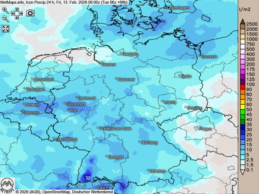 24-Stunden-Regenmengen Weiberfastnacht