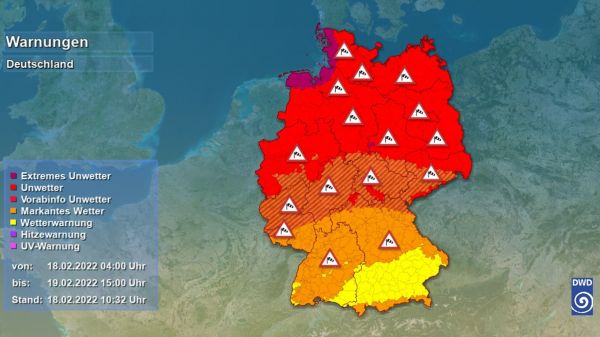 Vor allem dem Norden Deutschlands stehen ab Freitagnachmittag /-abend Stunden mit extremsten Wetterverhältnissen bevor. Neben erheblichen Einschränkungen im Nah- und Fernverkehr sind auch temporäre Stromausfälle möglich - vor allem in den besonders betroffenen Regionen sollten daher von der Bevölkerung Vorkehrungen getroffen werden.