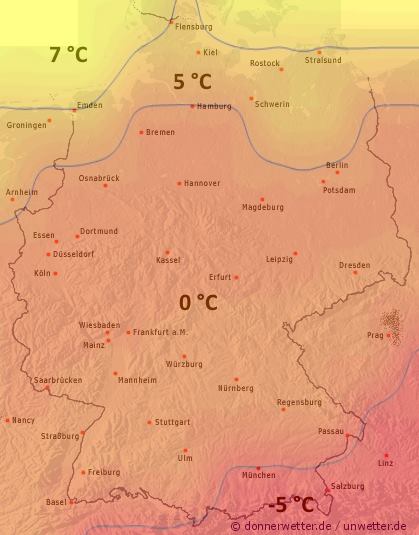 Die Temperaturen am Silvestertag und in der Nacht auf Neujahr bewegen sich auf ähnlichem Niveau wie dem der Vortage. Tendenziell könnte es sogar ein klein wenig wärmer werden: Am Tag erreichen die Höchsttemperaturen am Samstag Werte um 4 Grad C im Thüringer Bergland und um 7 Grad C an den wolkenverhangenen Küsten. In der Nordhälfte bleibt es auch in der Nacht deutschlandweit am wärmsten, die Temperaturen sinken auf Werte um 6 bis 2 Grad C ab.