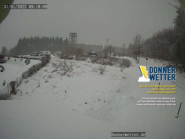 Der letzte Tag des Monats verabschiedet sich vor allem in den höheren Lagen der Mittelgebirge winterlich - wie aktuell etwa am Weißen Stein in der Eifel: