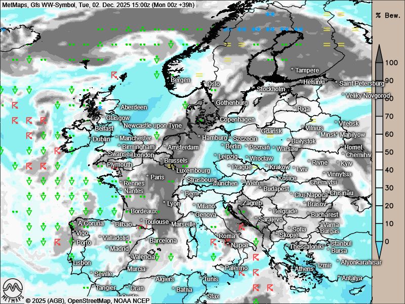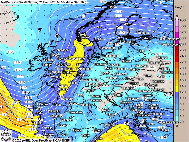 Sehr schön ist diese Entwicklung im Höhenwind von heute und morgen zu sehen: Nur Westeuropa wird gestreift, bevor der Jestream über Europa knickt und sich auflöst. Das stabile Hoch über Osteuropa setzt sich letztendlich durch.