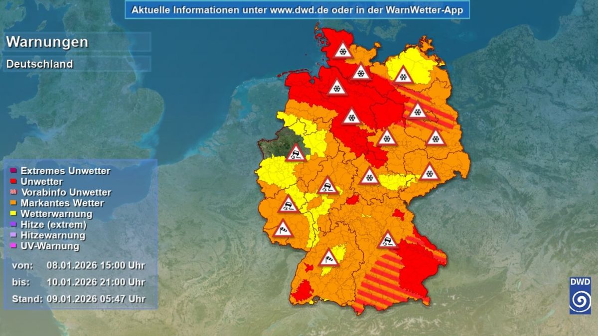 So hat sich in Niedersachsen flächendeckend Schneefall eingestellt, teils begleitet von erheblichen Schneeverwehungen. Der Schnee erreicht inzwischen auch den Großraum Hamburg.
