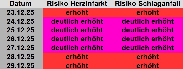 Herzinfarkt- / Schlagfanfallrisiken 23.12.-29.12.2025