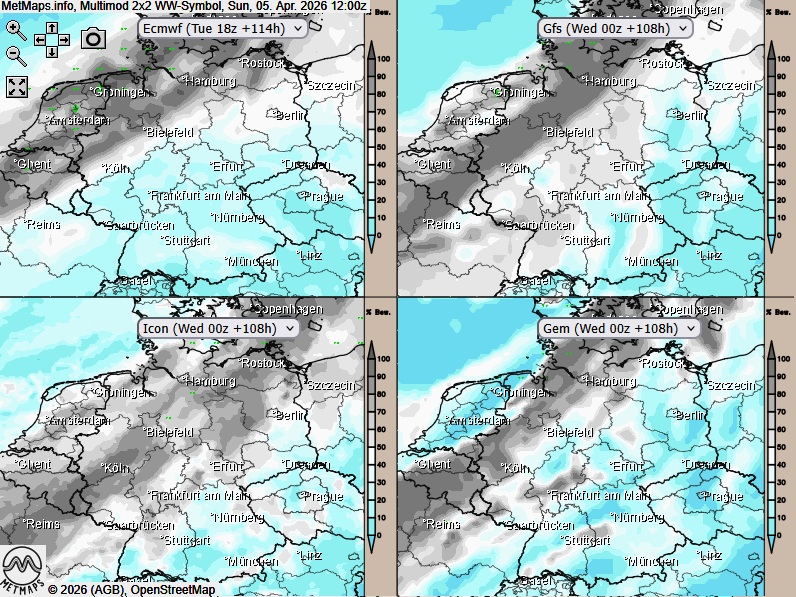 Multimodell Bewölkungsgrad Ostermontag