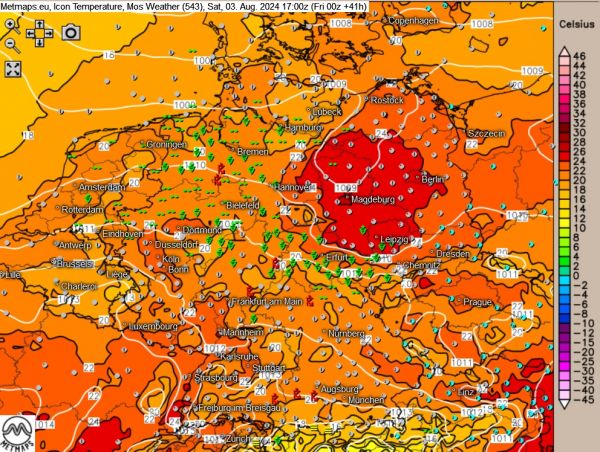 Die Karte zeigt das Deutschlandwetter am Samstag (17:00 Uhr) nach ICON.