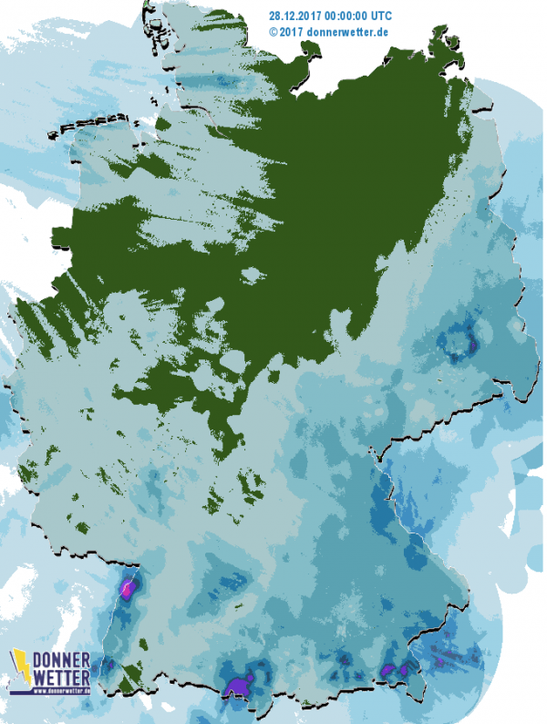 Heute zieht zum Nachmittag ein neues Niederschlagsgebiet nach Deutschland. Bei einsetzender Milderung wird aus dem Schnee auf Samstag meistens wieder Regen. Außerdem frischt der Wind zeitweise lebhaft auf. Die Niederschlagsmengen liegen zwischen 5 und 10 Liter pro Quadratmeter.
