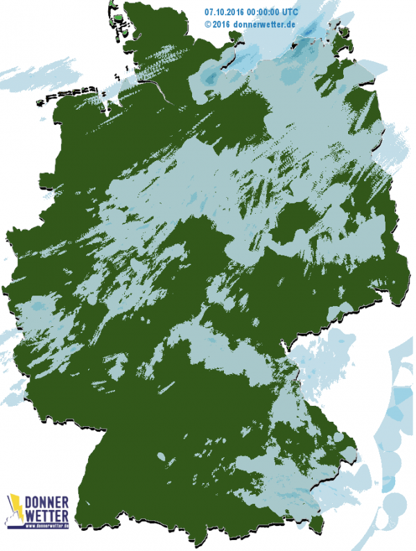 Im ganzen Land gab es gestern einzelne schwache Echos. Geringe Regenmengen fielen in Berlin und an der Küste. Im Westen und Südwesten des Landes war es nur geringer Regen der als Tropfen vom Himmel fiel. Heute gibt es ebenfalls einzelne schwache Schauer. Zwischendurch auch mal Sonne.