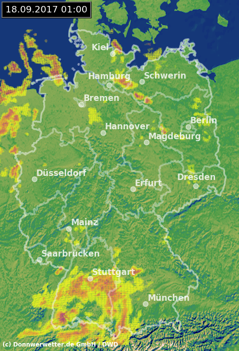 Radarbild von Montag, 18.09.2017 um 01.00 Uhr