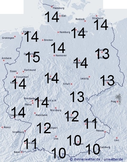 Von Westen und Nordwesten überquert uns ein umfangreiches Niederschlagsgebiet. In einfließender kälterer Luft geht der Regen im Bergland meist wieder in Schnee über. Sonst entsteht Benetzung durch Feuchtigkeit wie Tauansatz. Die Benetzungsdauer liegt in Deutschland allgemein zwischen 10 und 15 Stunden. Bei einer vorhandenen Schneedecke können bis zu 24 Stunden erreicht werden.