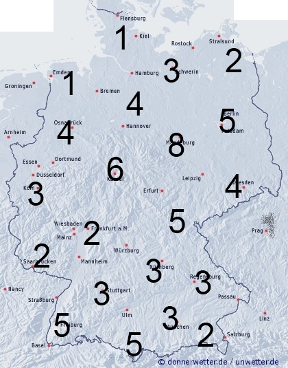 In Deutschland sorgen Regen und Schauer für eine allgemeine Benetzung von 2 bis 8 Stunden. Trocken bleibt es voraussichtlich nur im Nordseeumfeld und Schleswig-Holstein. Hier entsteht leichte Benetzung durch nächtlichen Strahlungstau.