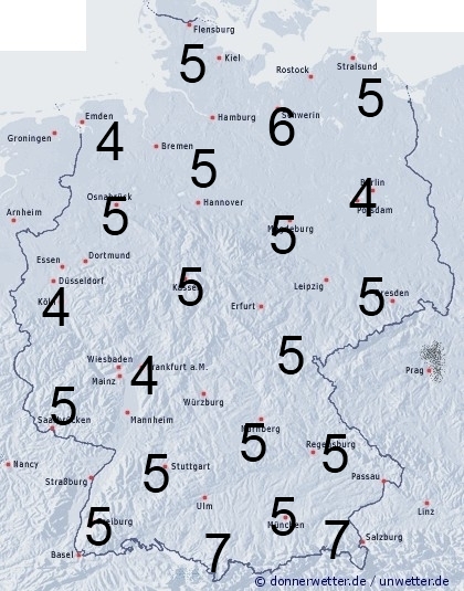Benetzung entsteht vorwiegend durch nächtlichen Strahlungstau. Insbesondere im Norden kann es örtlich zu etwas Regen oder einzelnen Schauern kommen. Die Benetzungsdauer liegt allgemein zwischen 4 und 7 Stunden, kann allerdings außerhalb von Ortschaften, sowie in windgeschützten Lagen deutlich nach oben abweichen.