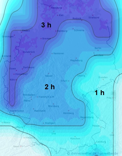 Wir stellen die Blattbenetzung generell in Stunden pro Tag auf der Karte dar. Durch die Lage des Feldes kann die Benetzungsdauer allerdings variieren.