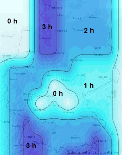 Wir stellen die Blattbenetzung generell in Stunden pro Tag auf der Karte dar. Durch die Lage des Feldes kann die Benetzungsdauer allerdings variieren.