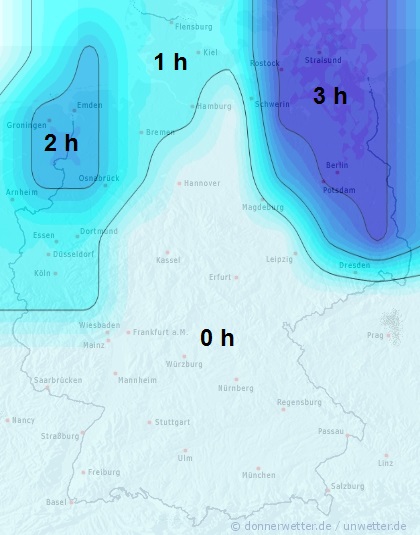 Wir stellen die Blattbenetzung generell in Stunden pro Tag auf der Karte dar. Durch die Lage des Feldes kann die Benetzungsdauer allerdings variieren.