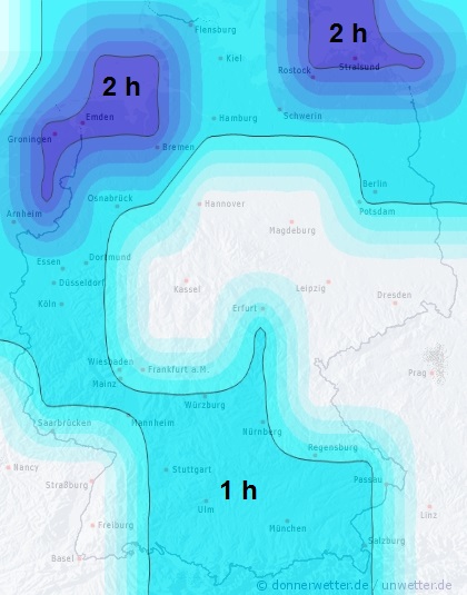 Wir stellen die Blattbenetzung generell in Stunden pro Tag auf der Karte dar. Durch die Lage des Feldes kann die Benetzungsdauer allerdings variieren.