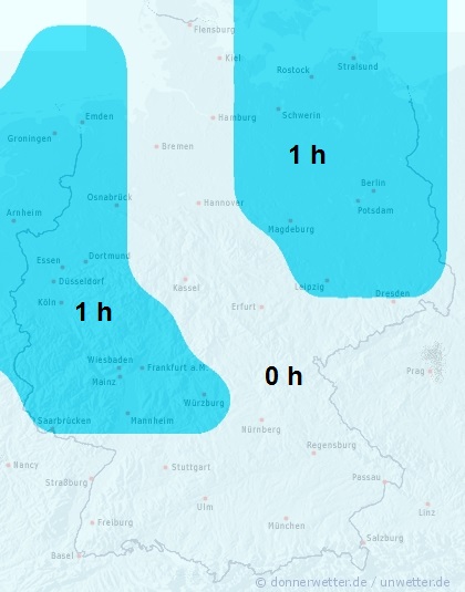 Wir stellen die Blattbenetzung generell in Stunden pro Tag auf der Karte dar. Durch die Lage des Feldes kann die Benetzungsdauer allerdings variieren.